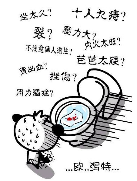 、痔疮:大便带血一般发生在排便过程中或便后,呈滴血或喷射状,血色鲜红,血与粪便不混合。痔疮引起的大便出血、患有痔疮解大便时鲜血常与粪便相混,有时伴有痔核脱出,形成水肿,嵌 顿时可发生疼痛,严重的痔疮患者可导致贫血。
