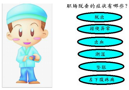 6左下腹疼痛:直肠脱垂是乙状结肠、直肠套叠的结果。由于肠管套叠、血运障碍、疝气形成,加之肠管位置下移而受牵拉,所以直肠脱垂时,左腹疼痛是常见症状。>>>以上症状您是否都有呢,还有哪些其他的症状呢?