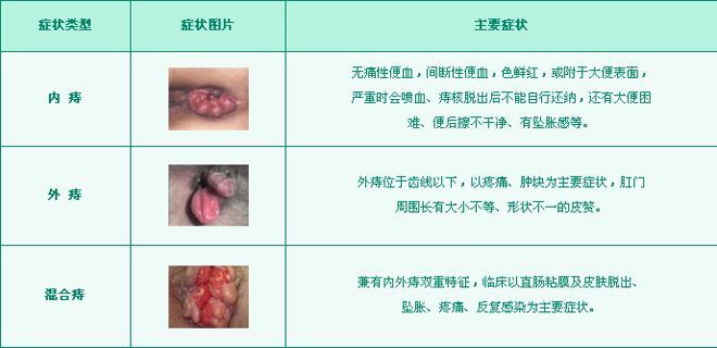 二、混合痔。多是内痔加重后的结果,兼有内痔便血与外痔疼痛的症状。