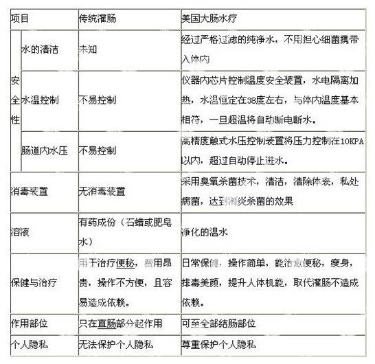 大肠水疗是一种当今国际流行的排毒、改善便秘、纠正腹泻、调节肠道菌群失调、预防结肠癌,并具有美容、美肤、减肥作用的治疗方法。通过洗肠机用水 清洗全部结肠(一般灌肠法只清洗结肠末端),排出毒素,恢复大肠粘液分泌功能,促进大肠蠕动,能重建结肠平滑肌功能,并且它是用水而不是化学制剂或剂来 清洗结肠,因此不会产生依赖性。
