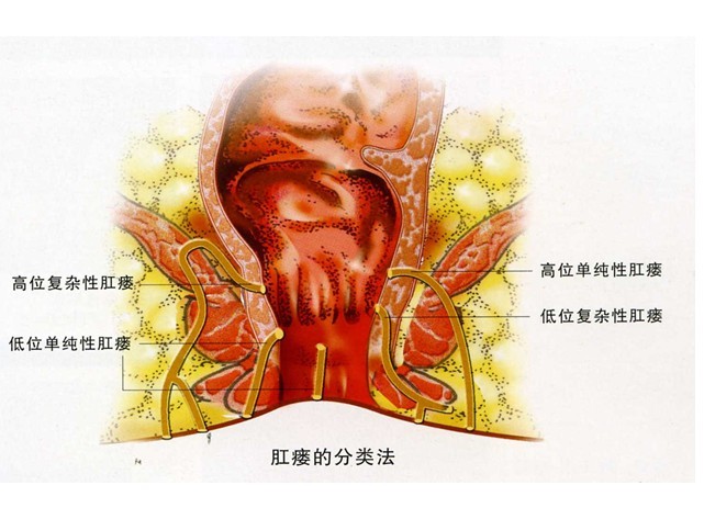 内口:内口大多位于肛门齿线附近,以外括约肌深层内外区分高位肛瘘与低位肛瘘。