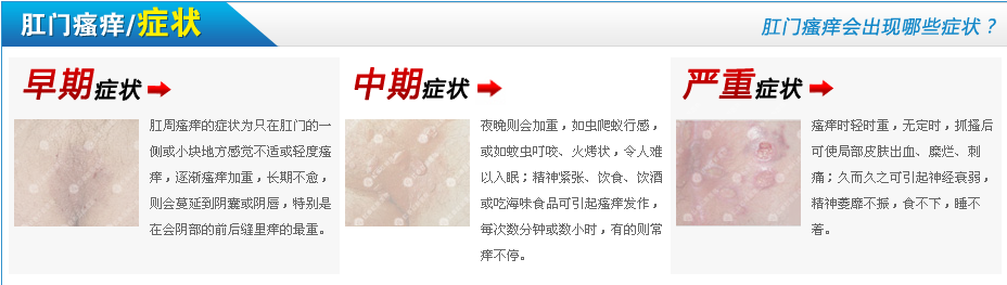 ①单纯的肛门瘙痒症:根据医生诊断使用,效及时、起效,临床效果极佳。②继发性肛门瘙痒:继发性肛门瘙痒主要是由内痔、脱肛、肛瘘、肛门湿疹等肛肠病引起的,由于肛门内粘液流出或者肛周流脓,刺激皮肤导致瘙痒。因此,治疗继发性肛门瘙痒,首先应当原发病,一旦原发性疾病之后,肛门瘙痒也就不治而愈了。在内痔、脱肛、肛瘘、肛门湿疹、肛裂等肛肠病的治疗上,微创疗法已经基本实现了三分钟确诊、六到二十分钟治疗,治疗过程小巧快、苦,80%的患者均可。