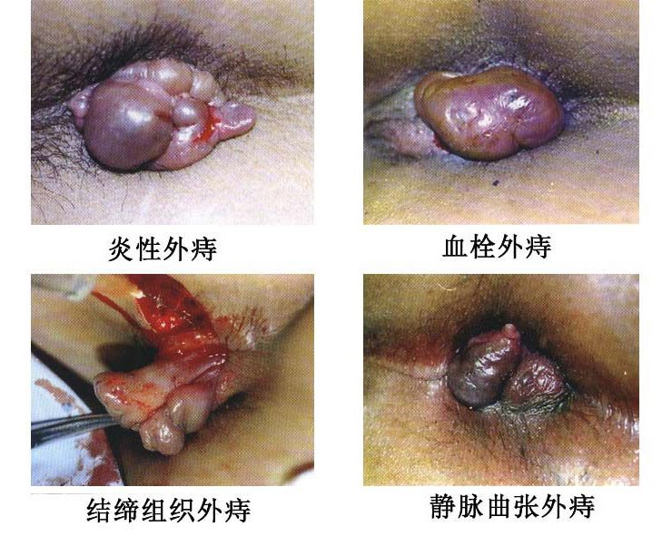 炎性外痔:常由肛缘皮肤损伤和感染引起,多有肛门疼痛,在排便时疼痛加重,便血,肛门部有少量分泌物。局部检查肛旁隆起的肿物,色红,充血明显,有触痛,有时可伴有全身不适和发热。