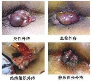 ② 血栓性外痔:肛门静脉丛破裂,血液漏出血管外,形成血栓在皮下隆起。特点为起病突然,局部肿胀、疼痛剧烈。