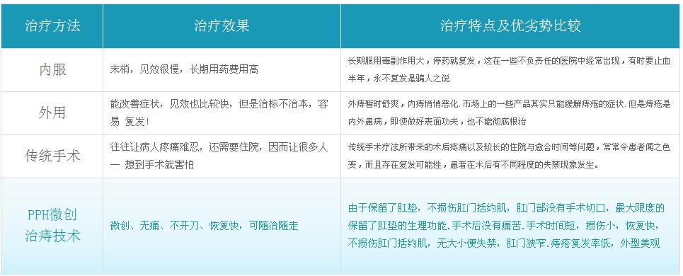 博仕pph微创术:专门用于治疗ⅱ-ⅳ度重度痔、不破坏肛垫正常生理功能且显著缩短手术时间并极大减轻术后疼痛的痔吻合术。由于手术既切除了直肠黏膜脱垂带,又阻断了直肠末端动静脉的终末吻合支,了痔疮发生的。对内痔、外痔、混合痔、环状痔、严重痔脱垂、脱肛等都有着非常理想的治疗。具有术后见效快、、苦等特点。
