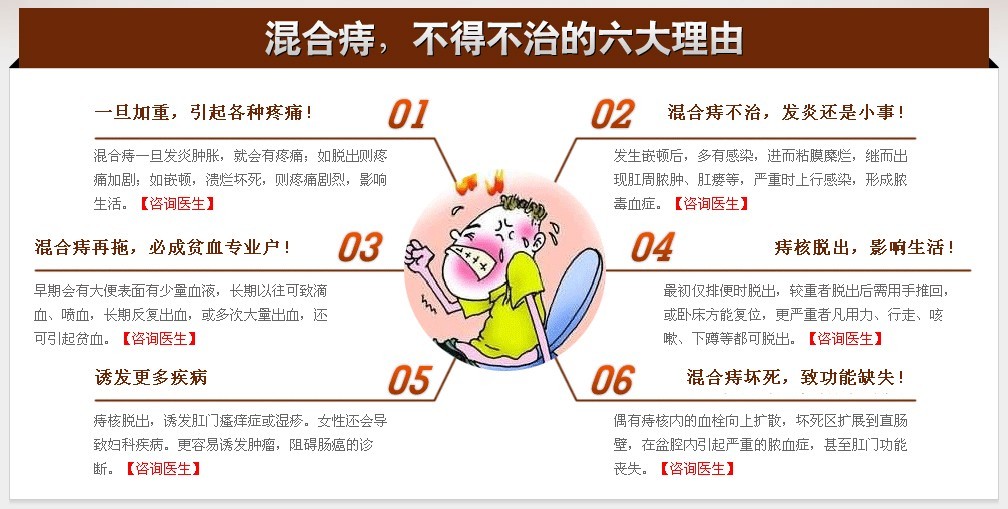 当然,如果混合痔没有进行及时的治疗,是不会仅仅只会存在这些症状的,随着症状的发展,它还可能产生: