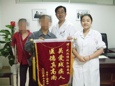 患者声音:因为身体原因,家境一直不好,痔疮一直拖着没钱治疗,在武汉博仕肛肠医院的关爱下,了多年来折磨我的痔疮,很感谢博仕医院医德高尚的医生们。
