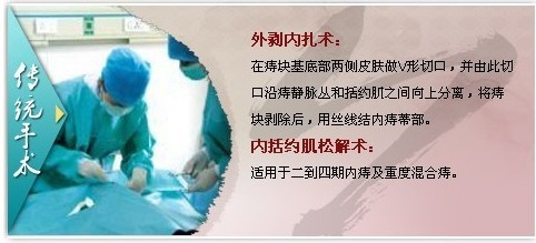 5.传统中医的涂红枯痔、枯痔钉疗法:枯痔钉是由物配置而成的一种两端尖并有一定硬度的钉状物,将其直接插入痔核内,钉逐渐溶解,使痔核发生炎症反应,插的局部液化坏死而萎缩。