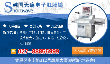 温馨提醒:武汉博仕肛肠医院为了广大市民的肛肠健康,现在开展健康大普查活动,只要您通过网络预约了武汉博仕肛肠医院的肛肠镜检查,就可以以52元享受原价150元全套肛肠镜检查服务。更多疑问可直接拨打24小时健康热线:027-88855999,或者直接点击>>>在线预约咨询。