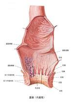 直肠是大肠下端的一段肠管, 长 12 ~15 厘米, 其上方是乙状结肠, 下方是肛管。直肠并不直, 从正面看略呈 S 形弯曲, 从侧面看弯曲更为明显, 其中沿骶骨的弯曲叫做骶曲。儿童因骶曲过小等原因易发生直肠脱垂。直肠上下也不一般粗, 上端管径的大小似结肠, 为 3 ~5 厘米, 中间靠下端变粗, 下端又变细, 与肛管相接。中间变粗的部分叫做直肠壶腹, 是粪便排出前贮存的“仓库”。直肠壶腹的黏膜上有上、中、下三个向腔内收缩的皱褶, 医学上叫做直肠瓣, 有阻挡粪便排出的作用。直肠膨胀时直肠瓣可消失。