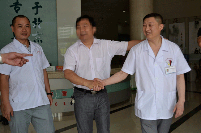 图注:患者与肛肠陈军主任握手