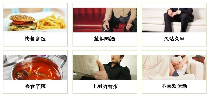 肛门部受冷、受热、便秘、腹泻、过量饮酒和多吃辛辣食品,都可刺激肛门和直肠,使痔静脉丛充血,影响静脉血液回流,以致静脉壁抵抗力下降。腹内压力增加因腹内肿liu、子宫肿liu、卵巢肿liu、前列腺肥大、妊娠、饮食过饱或蹲厕过久等,都可使腹内压增加,妨碍静脉的血液回流。专家为此提醒读者:如厕时间尽量控制在三分钟以内,且最好养成定时排便的习惯,避免强行排便。