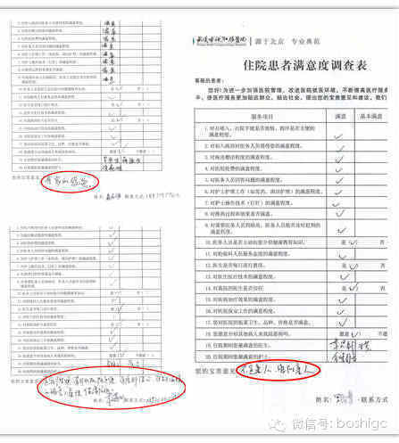 三病区一位患者住院期间感受到了博仕病房的温暖,出院前在“住院患者满意度调查表”上写下了自己的真实感受。