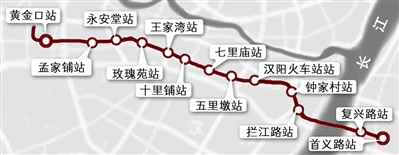 黄金口站(二期起点,换乘武汉轨道交通11号线), 孟家铺站,永安堂站,玉龙路站,王家湾站(换乘武汉轨道交通3号线),十里铺站,七里庙站,五里墩站(换乘武汉轨道交通10号线),汉阳火车站站,钟家村站(换乘武汉轨道交通6号线),拦江路站,复兴路站(换乘武汉轨道交通5号线),首义路站