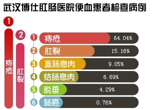 武汉博仕肛肠医院的医生表示便血症状往往不是单独存在的,而是常常伴随其他的多种并发症一起存在,若不及时治疗会给患者带来更多的痛苦,也给便血的治疗增加了难度。